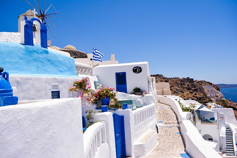 While on Santorini island, don’t miss lazy days on the red and black sand beaches and the Akrotiri archaeological site. The best way to get around is by hiring a quad bike (but don't forget to wear a helmet!).