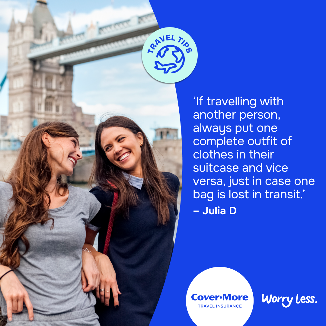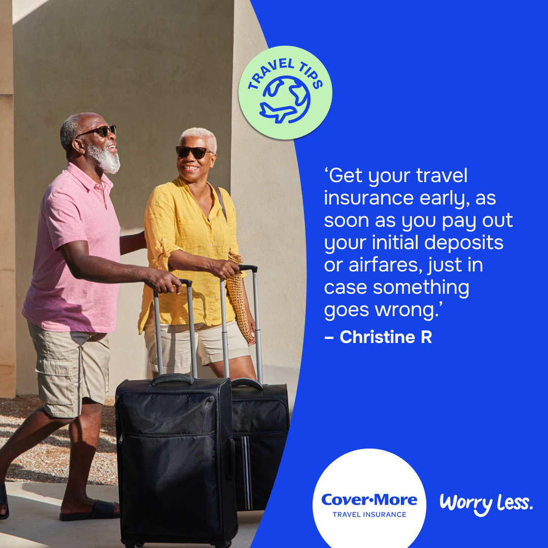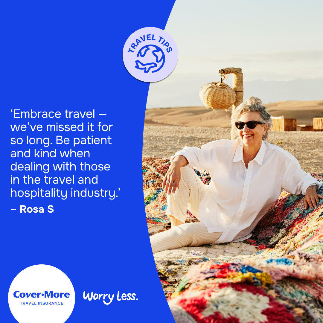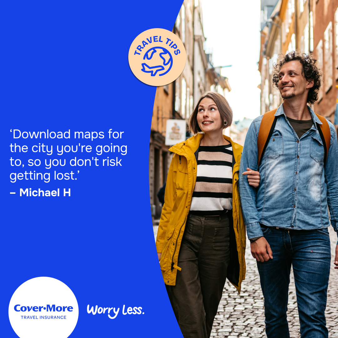 *The travel tips submitted as part of our Organised or Improvised campaign are the reported personal experiences of each individual and are provided for information purposes only. Cover-More does not guarantee or warrant the accuracy, completeness or validity of any of the stories. Any views, opinions, and positions expressed in the submissions and those providing comments are theirs alone and do not necessarily reflect those of Cover-More travel insurance. Travel tip submissions have been edited for grammar, spelling, syntax and punctuation errors only. Any advice provided is general advice only. For more information on Cover-More travel insurance, always read the Combined FSG/PDS and any other policy documentation to make sure that your chosen cover and policy is right for you.