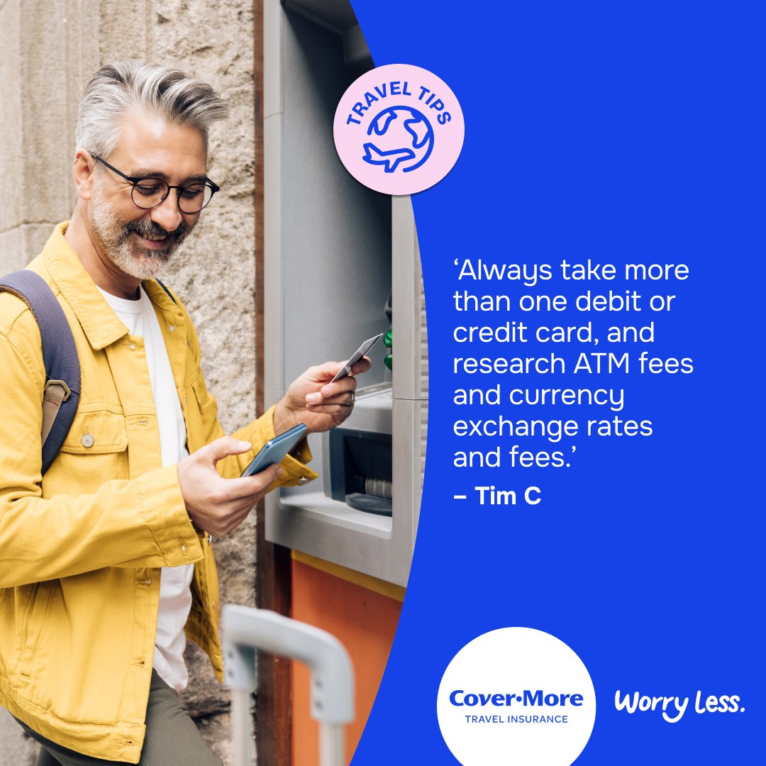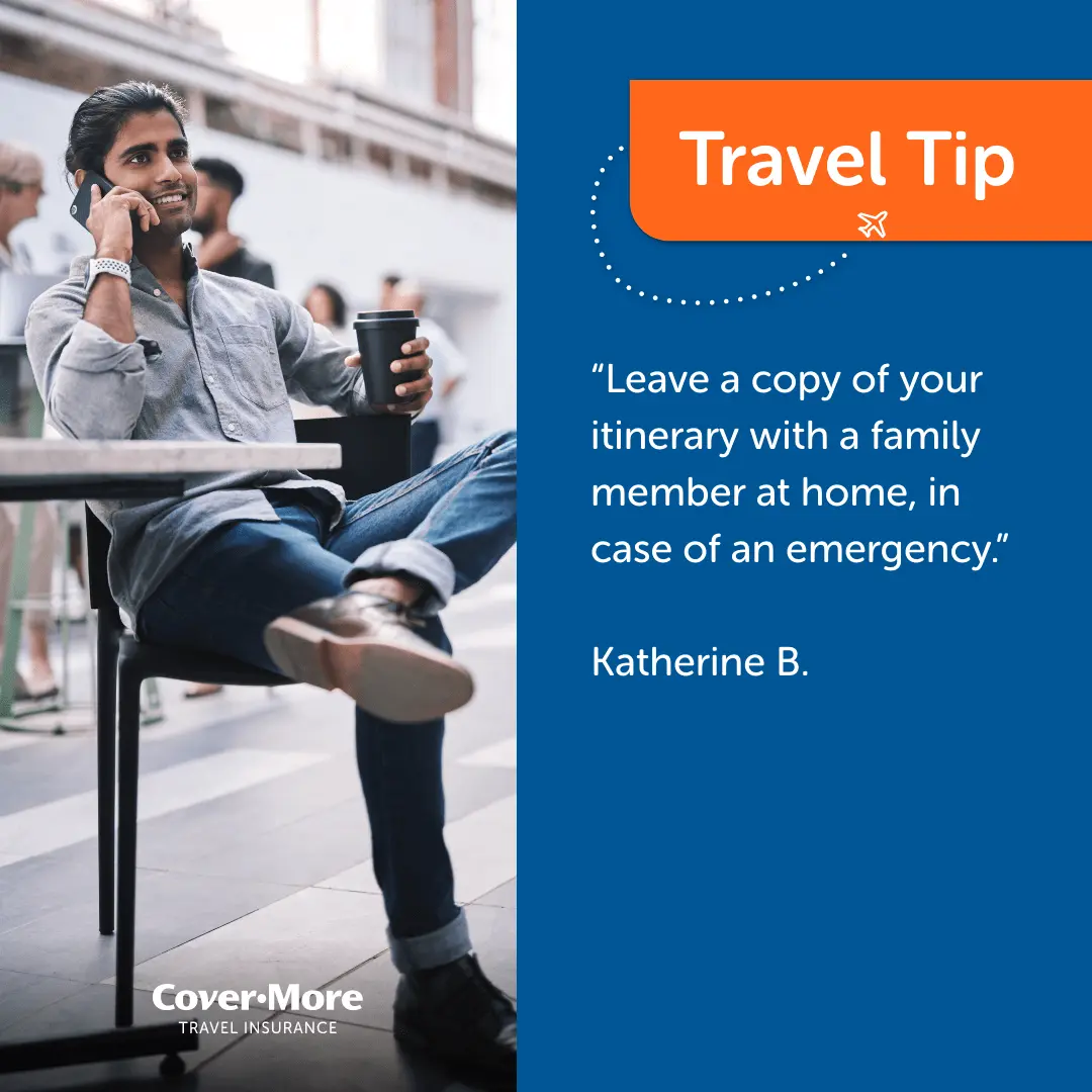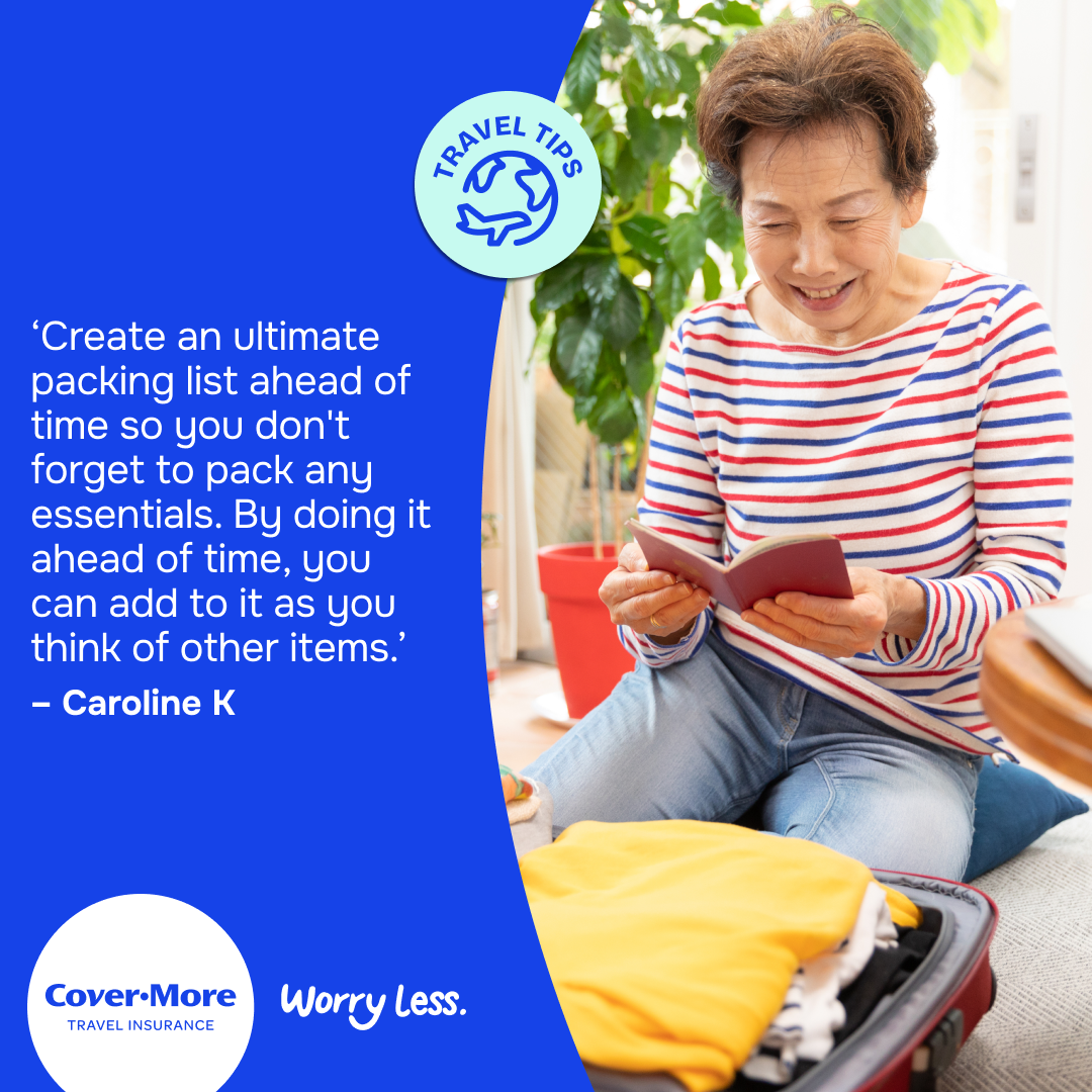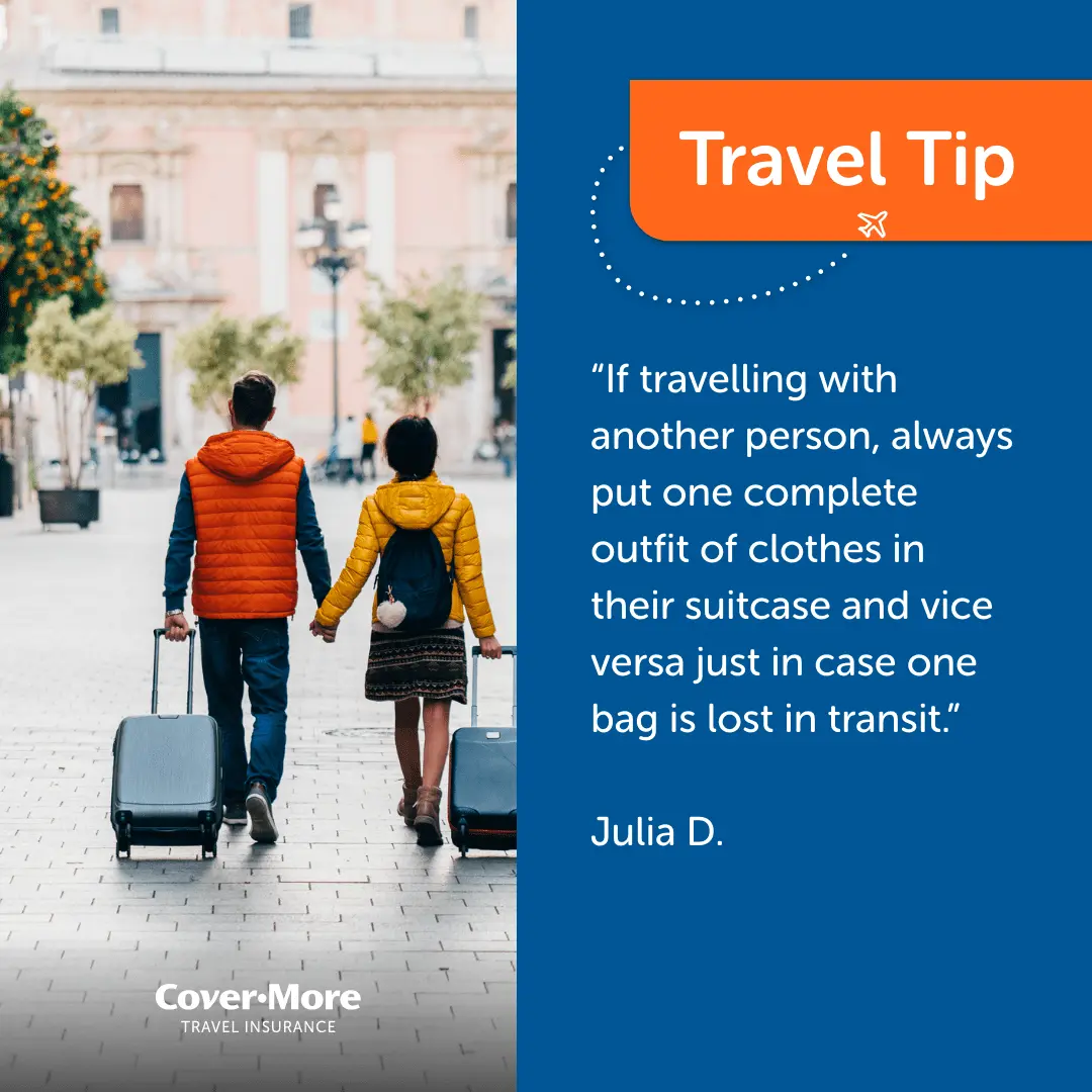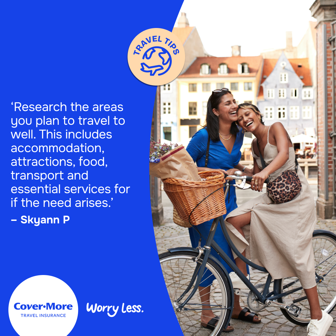 *The travel tips submitted as part of our Organised or Improvised campaign are the reported personal experiences of each individual and are provided for information purposes only. Cover-More does not guarantee or warrant the accuracy, completeness or validity of any of the stories. Any views, opinions, and positions expressed in the submissions and those providing comments are theirs alone and do not necessarily reflect those of Cover-More travel insurance. Travel tip submissions have been edited for grammar, spelling, syntax and punctuation errors only. Any advice provided is general advice only. For more information on Cover-More travel insurance, always read the Combined FSG/PDS and any other policy documentation to make sure that your chosen cover and policy is right for you.