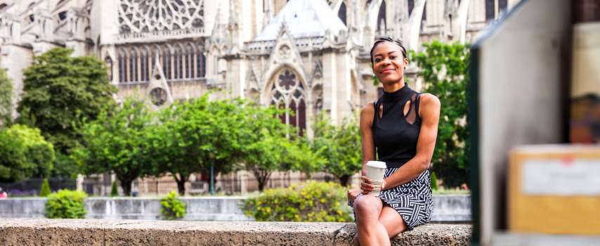Traveller who purchased travel insurance for France enjoying some coffee in Paris
